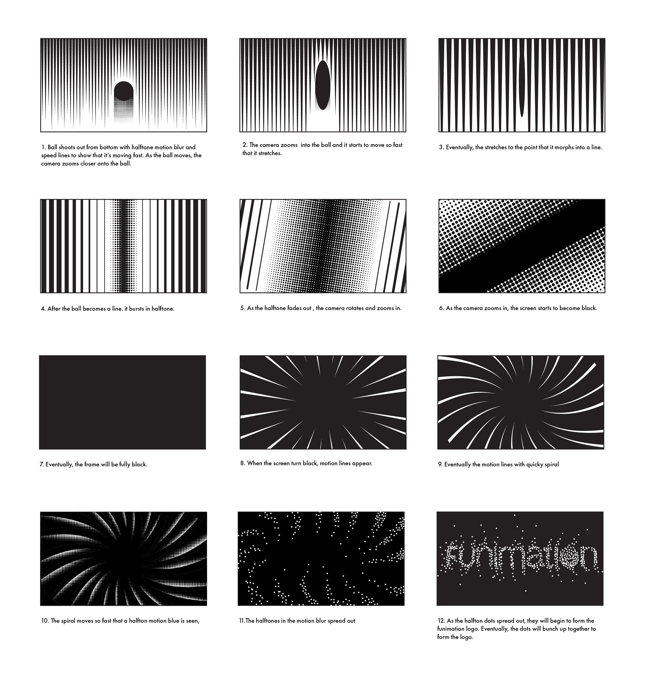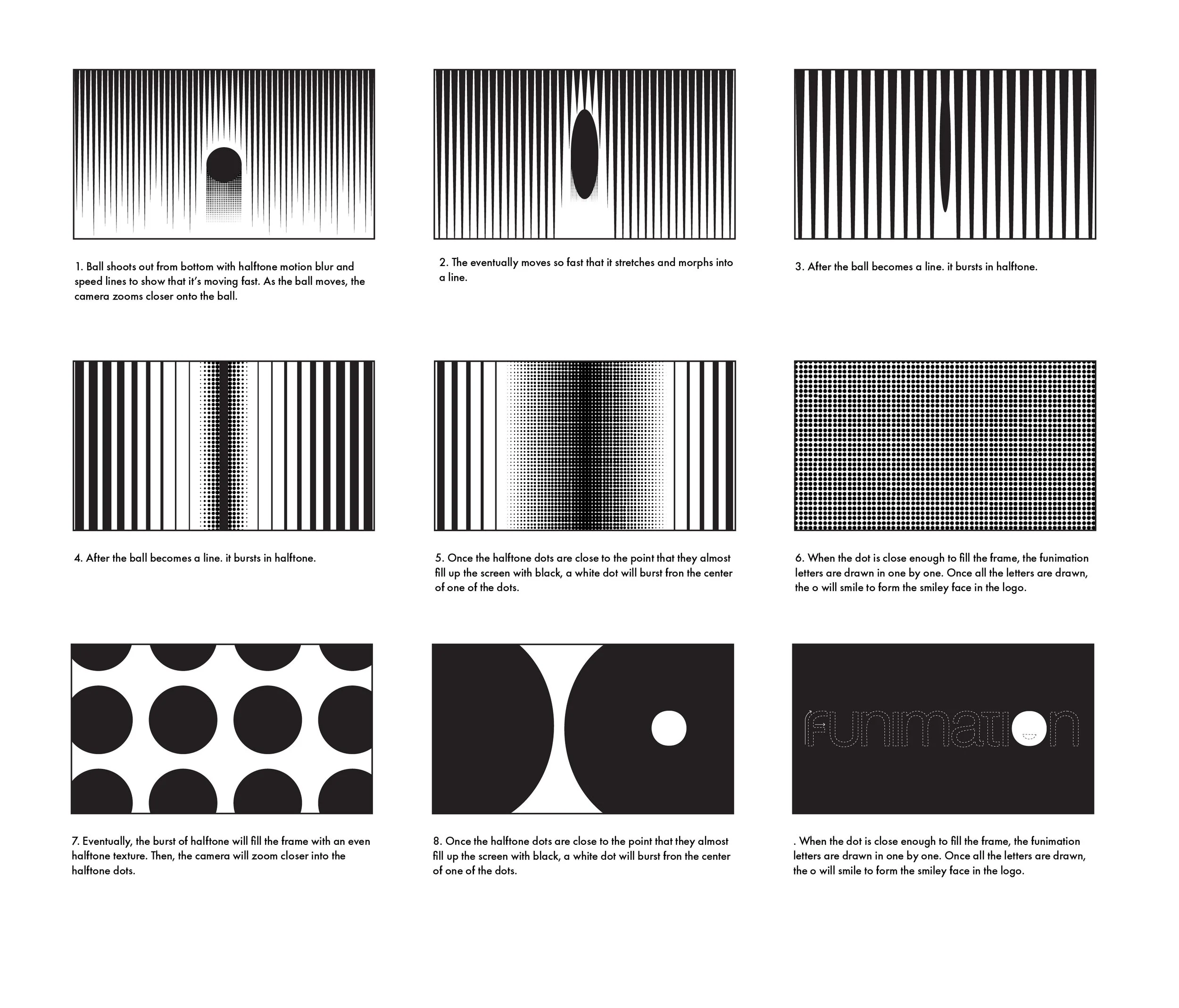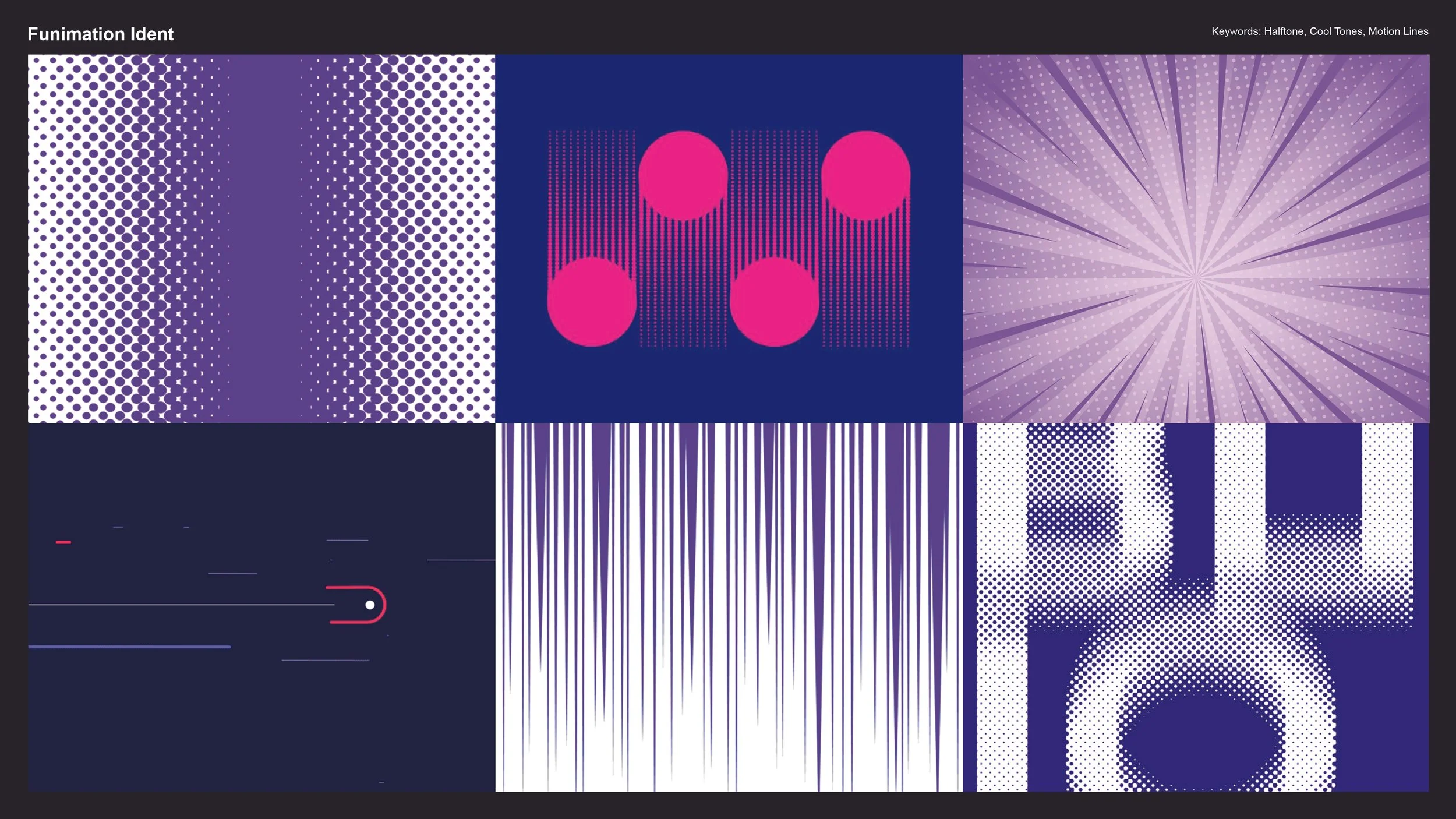 An ident, a short animation depicting the current visual identity and core values, for Funimation. This interpretation of their identity utilizes halftones and motion lines to depict anime, capturing the energy and excitement fans experience when watching the genre.