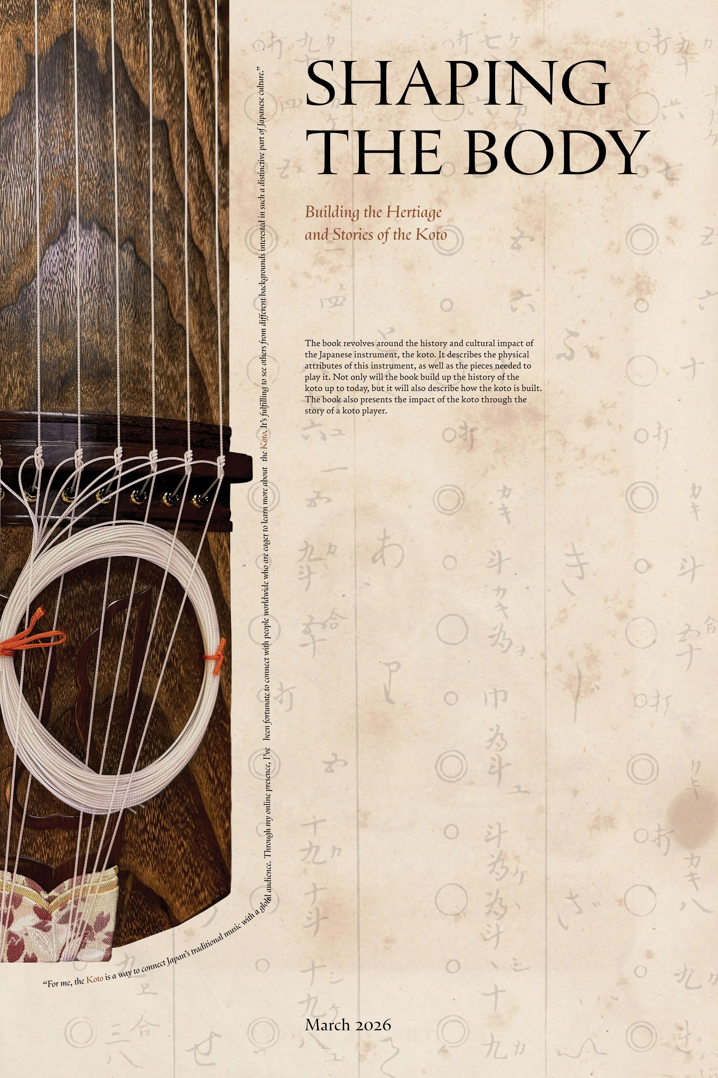 This project is a tribute to my mother, who played the koto in Japan from ages 3 to 18 and earned a certificate. It is also a way to reconnect with my Japanese heritage, which I didn’t grow up fully knowing the culture and language. She didn’t want to share photos or her koto background, which led me to have the book focus on learning more about the instrument and exploring the stories of others.